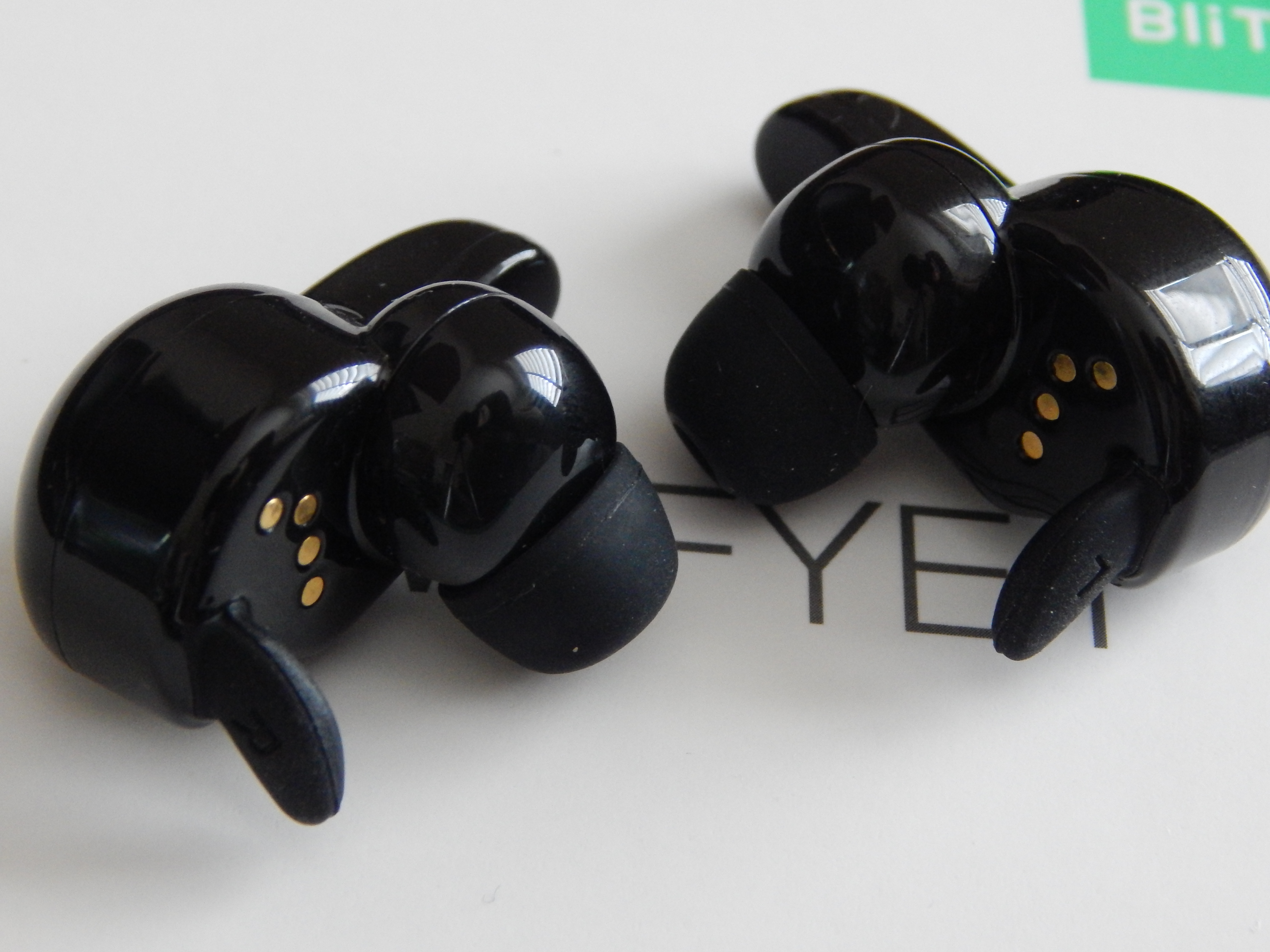 When it comes to some of the featured for the headphones, they do have a built in mic and a button on each side. The button allows you to take phone calls or pause / play music. One more thing I would like to mention is the headphones have built-in voice messages. They tell you when the headphones power on, when they connect, and when you have an incoming phone call. Last but not least, each headphone does have an LED indicator which gives you an idea about its state.
