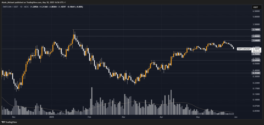 Considered as one of the most recovered assets during the last buying phase, Fartcoin recorded a mind-blowing gain and reached its highest level of $1.6 for the first time in four months. While that brought a good return on investment within a short period, major holders booked profits, and the price slipped.