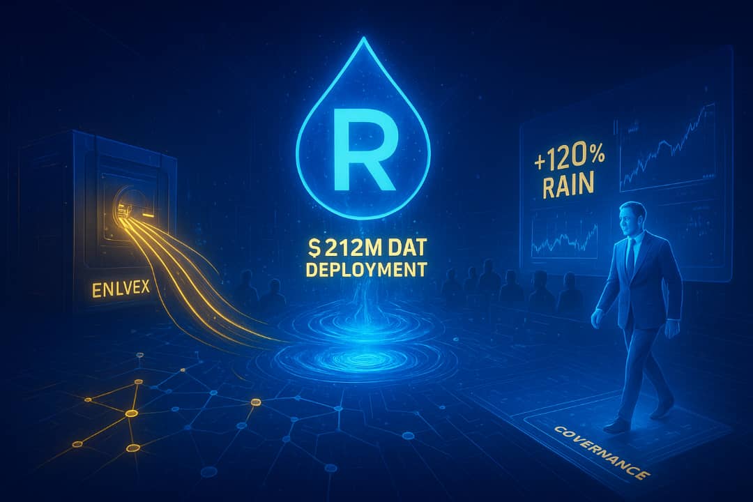 The surge began when $ENLV, a publicly traded biotech firm, announced a $212M treasury allocation into Rain Protocol.